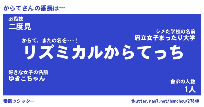 | 意味不明あだ名 | 『ペロリンからて』『からてフォーエバー』 |