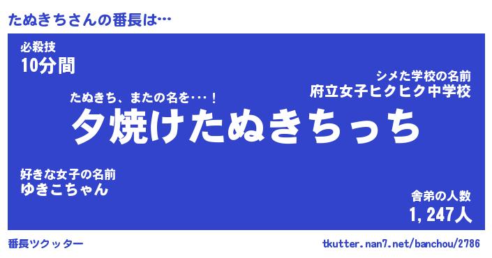 | 意味不明あだ名 | 『ペロリンたぬきち』『永久保存たぬきち』 |