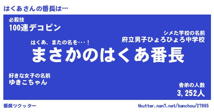 | ピコ太郎風あだ名 | 『ハコ一郎』『ピハ六郎』『ハク八郎』 |