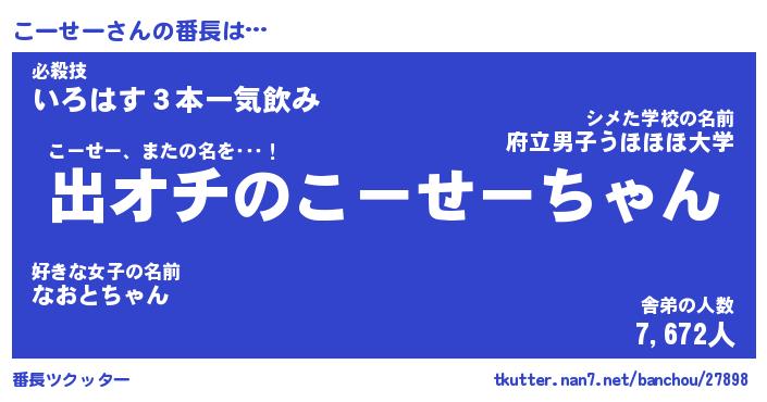 | 肩書あだ名 | 『こーせー御曹司』『こーせー国家主席』 |