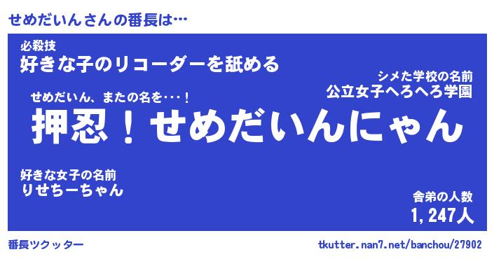 | 肩書あだ名 | 『せめだいん社長』『せめだいん国家主席』 |