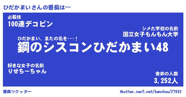 | ファンタジー風あだ名 | 『ヒダフェル』『エターナルヒダカマイー』 |