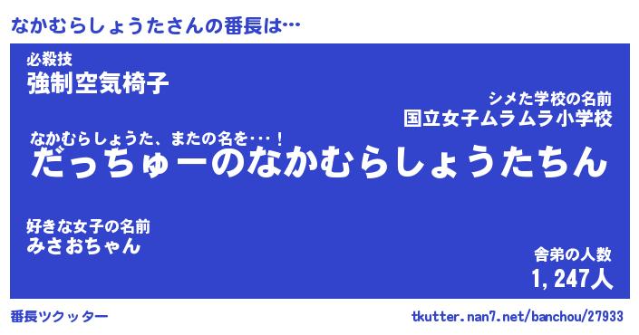 | ヒーロー風カッコイイあだ名 | 『スーパーナカムラショウタ』 |