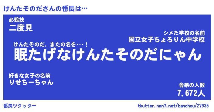 | 意味不明あだ名 | 『ペロリンけんたそのだ』 |