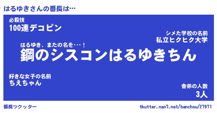 | ファンタジー風あだ名 | 『ハルフェル』『エターナルハルユキー』 |