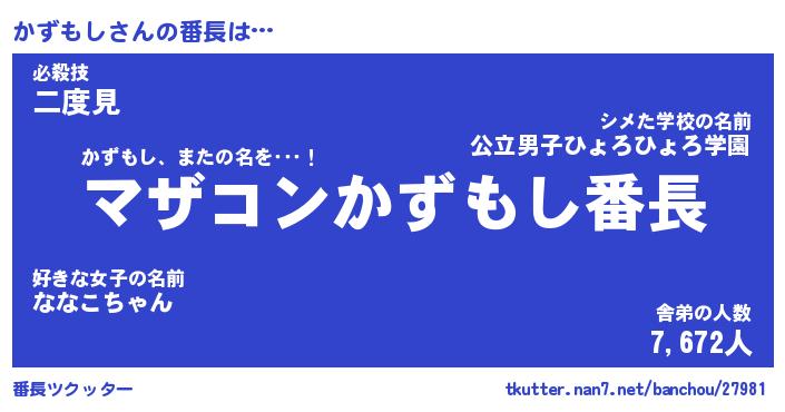 | 欧米人風あだ名 | 『マイケルかずもし』『ウサインかずもし』 |