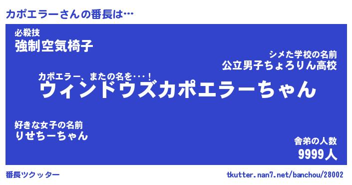 | ファンタジー風あだ名 | 『カポフェル』『エターナルカポエラーー』 |