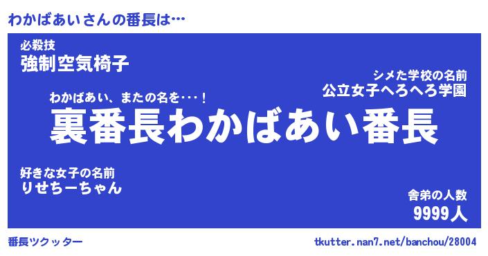 | 男性向けラノベタイトル風あだ名 | 『ワカバアイアートオンライン』 |