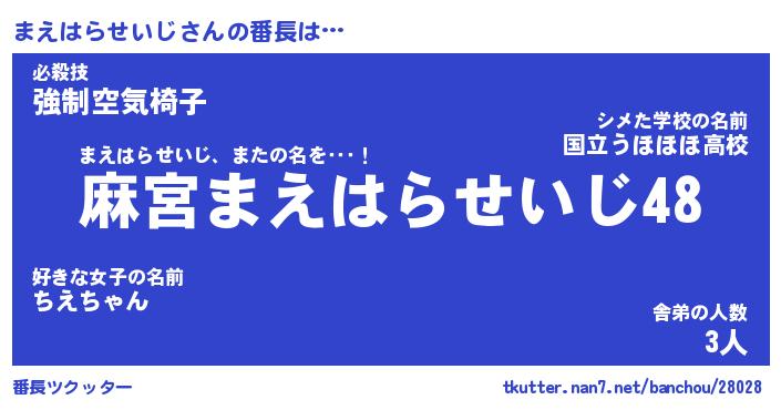 | ピコ太郎風あだ名 | 『マコ次郎』『ピマ二郎』『マエ十郎』 |