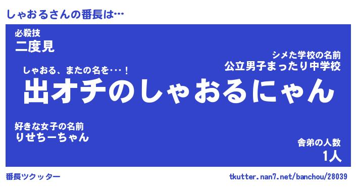 | 意味不明あだ名 | 『ペロリンしゃおる』『永久保存しゃおる』 |