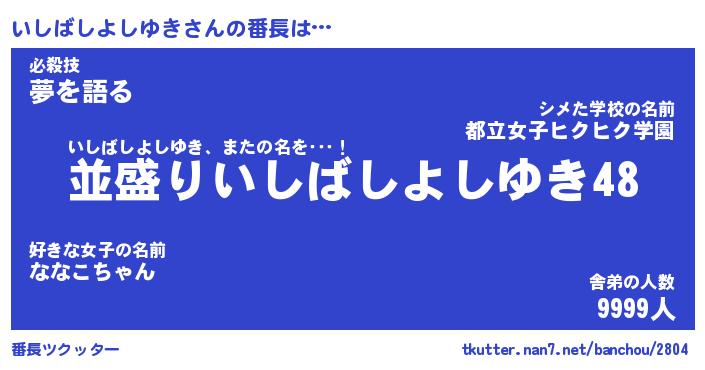 | 男性向けラノベタイトル風あだ名 | 『いしばしよしゆきの憂鬱』 |