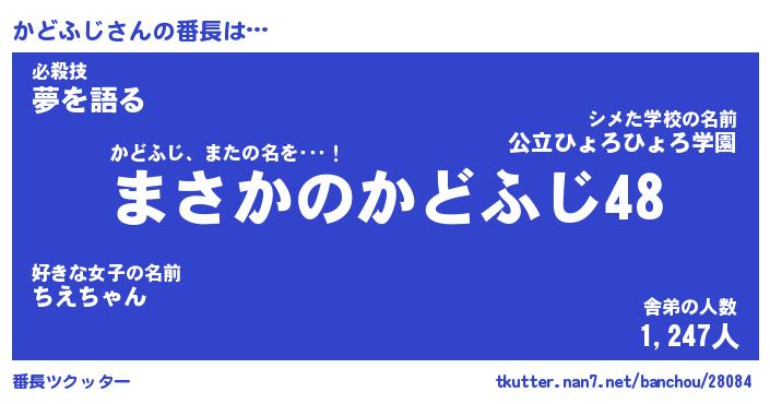 | 恥ずかしいあだ名 | 『プリティーかどふじ』『かどっちょ』 |