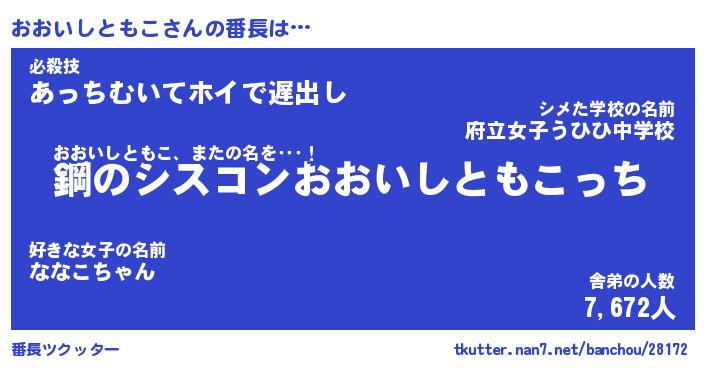 | 男性向けラノベタイトル風あだ名 | 『オオイシトモコアートオンライン』 |