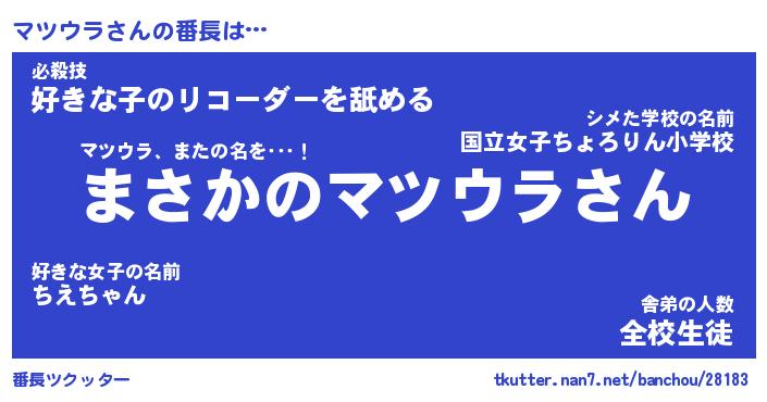 | ファンタジー風あだ名 | 『マツフェル』『エターナルマツウラー』 |