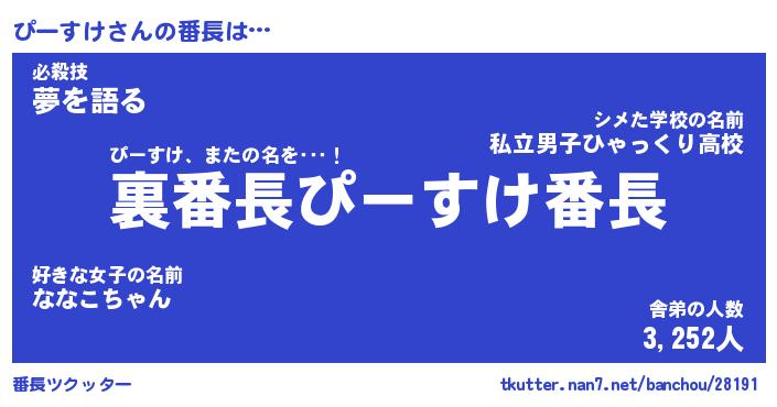 | 意味不明あだ名 | 『ペロリンぴーすけ』『永久保存ぴーすけ』 |