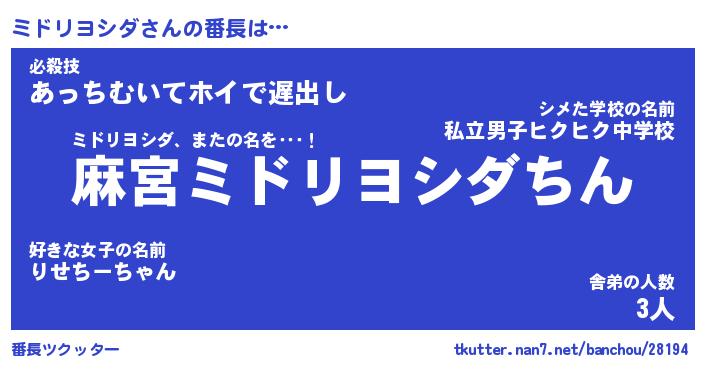 | 欧米人風あだ名 | 『マイケルミドリヨシダ』 |