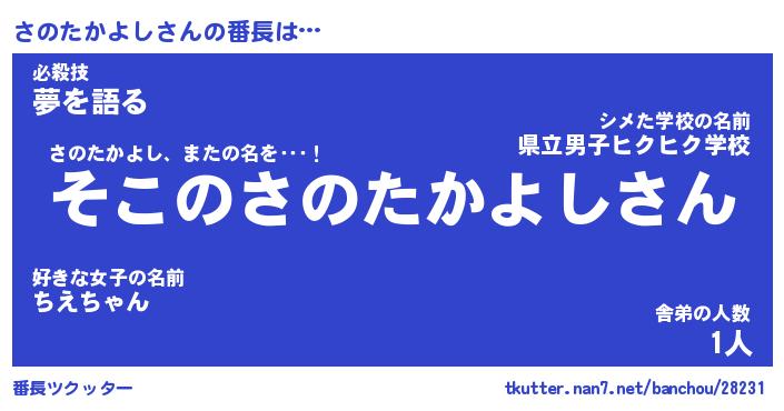 | 肩書あだ名 | 『さのたかよし店長』『さのたかよし担任』 |