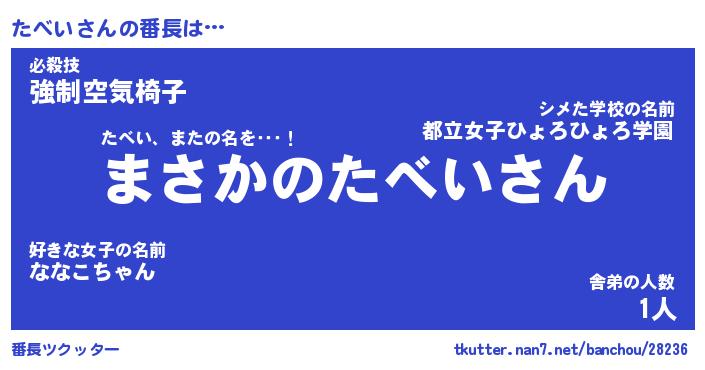 | ヒーロー風カッコイイあだ名 | 『スーパータベイ』『ウルトラたべいマン』 |