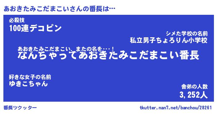 | ヒーロー風カッコイイあだ名 | 『スーパーアオキタミコダマコイ』 |