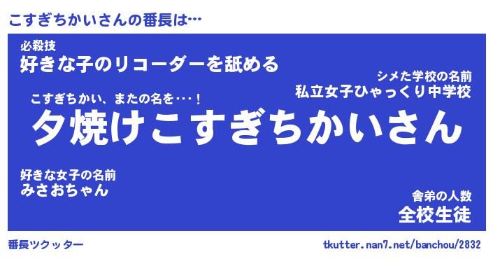 | 伝説のあだ名 | 『封印されしスナイパーこすぎちかい』 |