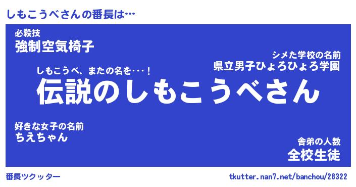 | 男性向けラノベタイトル風あだ名 | 『しもこうべの憂鬱』 |
