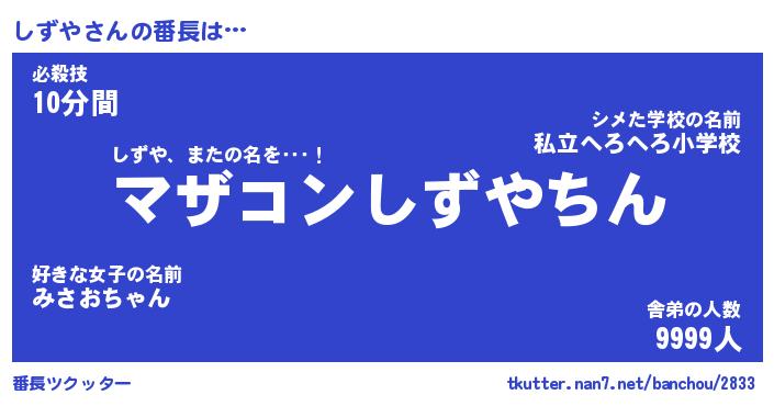 | ヘコむあだ名 | 『しずもー』『豆乳』『しずを』 |