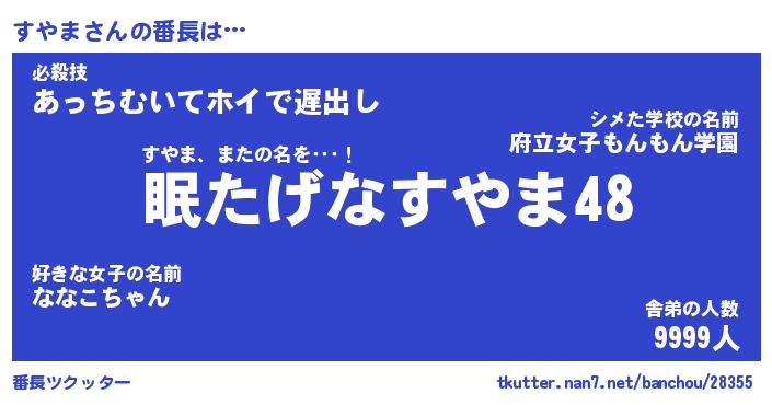 | ファンタジー風あだ名 | 『スヤフェル』『エターナルスヤマー』 |