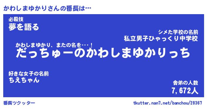 | ヒーロー風カッコイイあだ名 | 『スーパーカワシマユカリ』 |