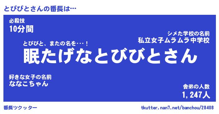 | 意味不明あだ名 | 『ペロリンとびびと』『永久保存とびびと』 |
