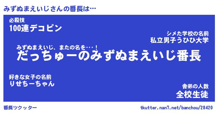 | ヒーロー風カッコイイあだ名 | 『スーパーミズヌマエイジ』 |
