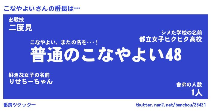| ファンタジー風あだ名 | 『コナフェル』『エターナルコナヤヨイー』 |