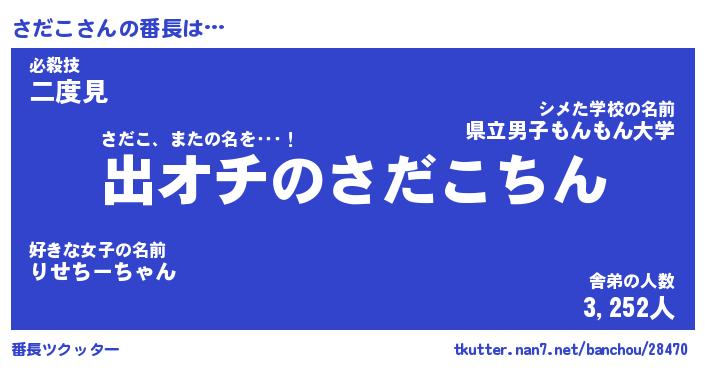 | 2回繰り返すあだ名 | 『さださだ』『ささだだ』『ぬめぬめ』 |