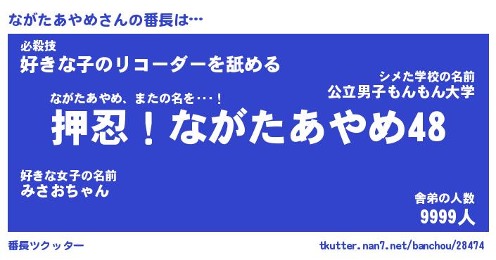 | ヒーロー風カッコイイあだ名 | 『スーパーナガタアヤメ』『炎刃騎士ナガ』 |