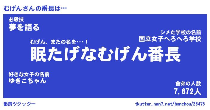 | ファンタジー風あだ名 | 『ムゲフェル』『エターナルムゲンー』 |