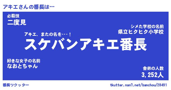 | ヒーロー風カッコイイあだ名 | 『スーパーアキエ』『ウルトラアキエマン』 |