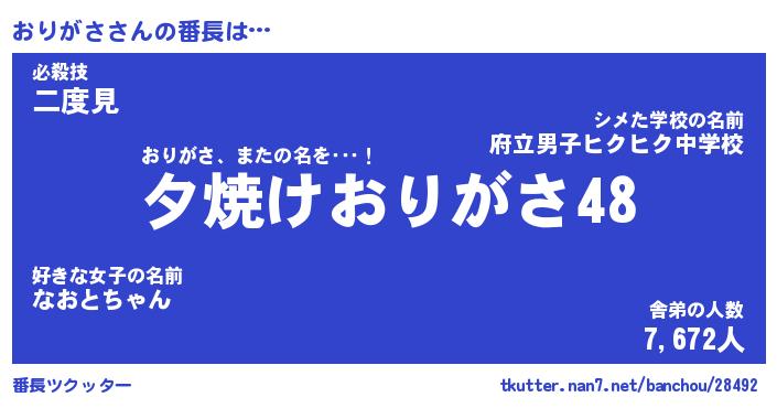 | 意味不明あだ名 | 『ペロリンおりがさ』『永久保存おりがさ』 |