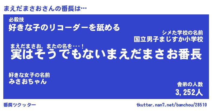 | 伝説のあだ名 | 『封印されしスナイパーまえだまさお』 |
