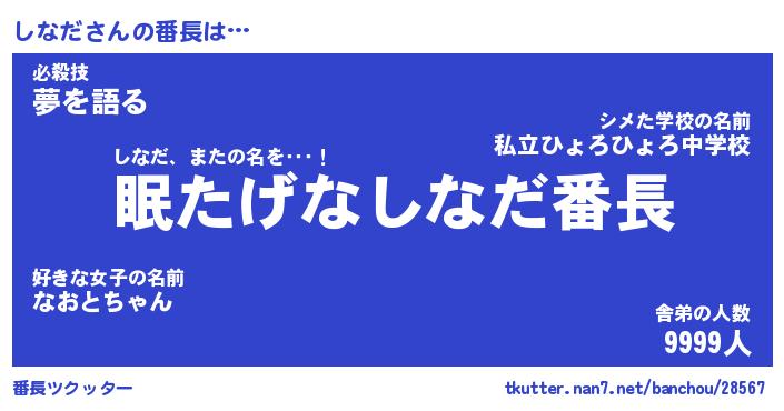 | 伝説のあだ名 | 『封印されしスナイパーしなだ』 |