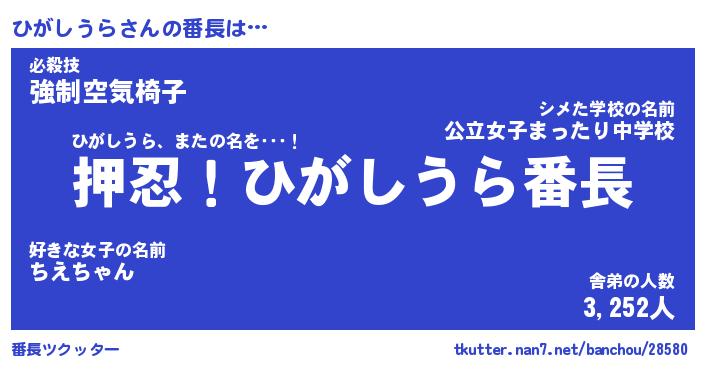 | ヒーロー風カッコイイあだ名 | 『スーパーヒガシウラ』『銀牙騎士ヒガ』 |
