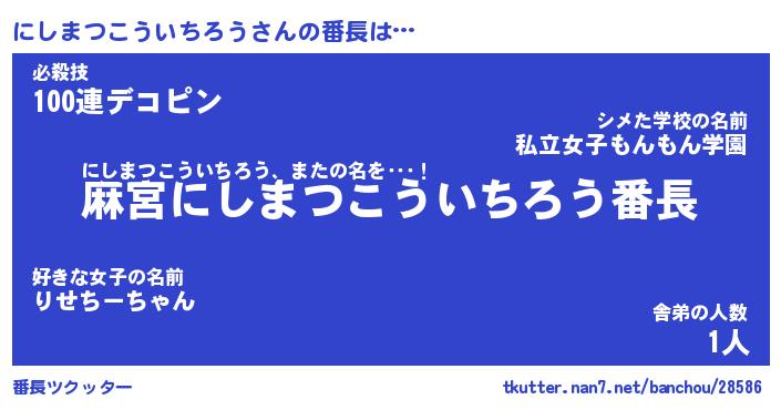 | 意味不明あだ名 | 『ペロリンにしまつこういちろう』 |