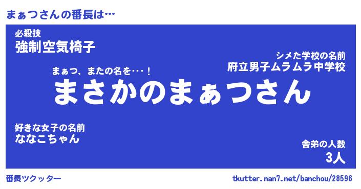 | 伝説のあだ名 | 『伝説のスナイパーまぁつ』 |