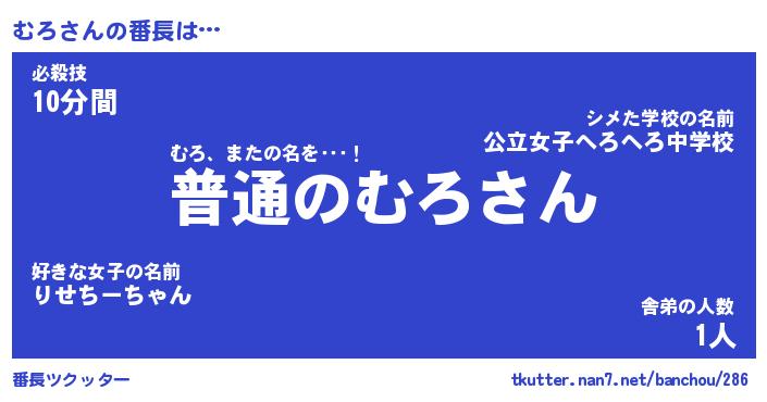 | 胡散臭い通販商品みたいなあだ名 | 『モテモテ間違いなし水晶球…その名も「むろ」』 |