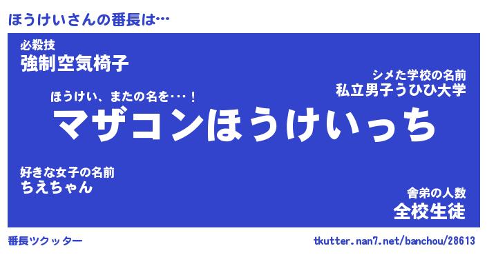 | ヒーロー風カッコイイあだ名 | 『スーパーホウケイ』『暗黒騎士ホウ』 |