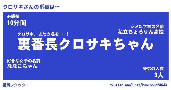 | ヒーロー風カッコイイあだ名 | 『スーパークロサキ』『魔戒騎士クロ』 |
