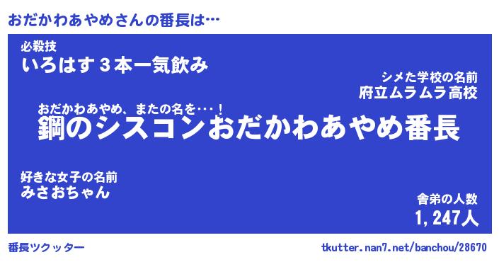 | ヘコむあだ名 | 『おだっふぃ~』『なまこ酢』 |