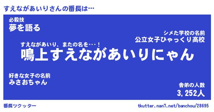 | 伝説のあだ名 | 『封印されしスナイパーすえながあいり』 |