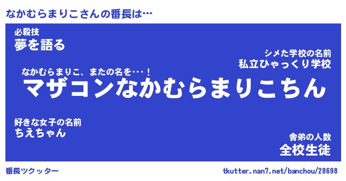 | ヘコむあだ名 | 『なかにゅー』『なまこ酢』 |