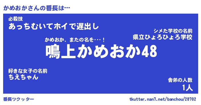 | 意味不明あだ名 | 『ペロリンかめおか』『永久保存かめおか』 |
