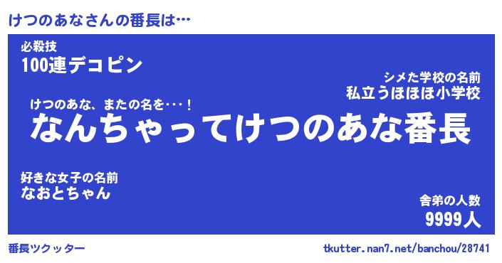 | ヒーロー風カッコイイあだ名 | 『スーパーケツノアナ』『天弓騎士ケツ』 |