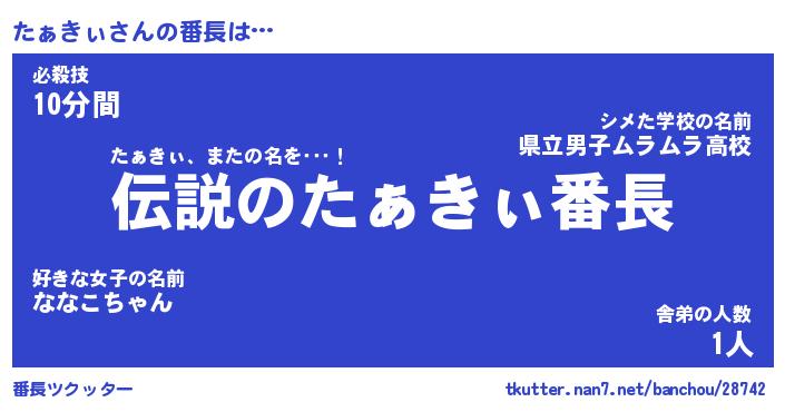 | 伝説のあだ名 | 『伝説の竜騎士たぁきぃ』 |